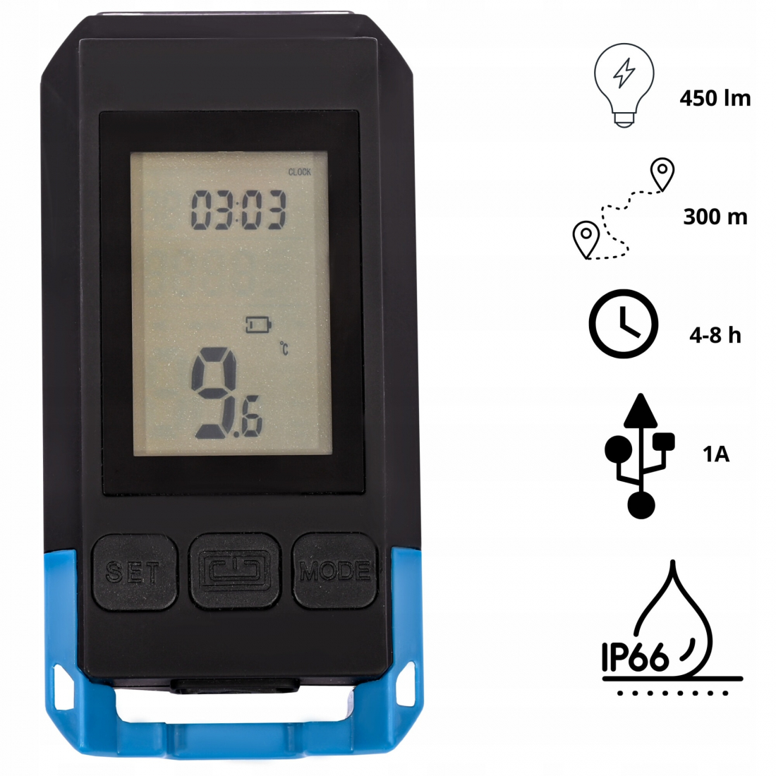 Demontare usoara – daca este necesar, lampa poate fi demontata rapid, de ex. pentru a incarca bateria sau a o proteja impotriva furtului.